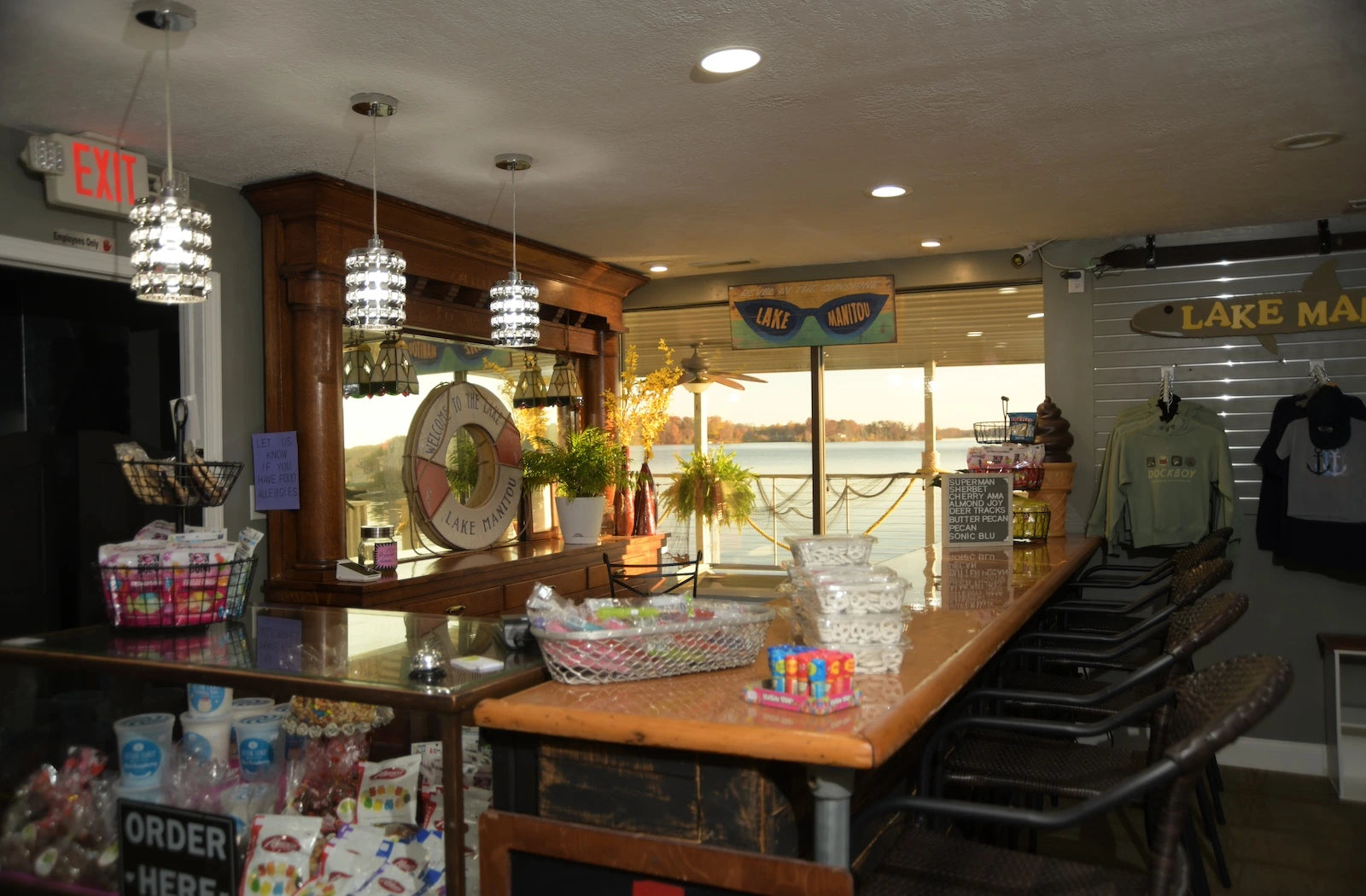 The Snack Pad was added to the Lilly Pad in May of 2024. It has become a local destination for boaters, walkers, cyclists, and more seeking to find a place to get refreshments while enjoying beautiful Lake Manitou. While you enjoy your refreshments you can enjoy a breath taking view of the lake and even dip your toes in the water. There is also seating on the deck. Come and revel in the sunshine. It is a magical place to be! We're open 7 days a week!